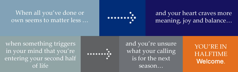 This season of life is often called Halftime; a pause at midlife to reflect back and take stock, to look forward and dream and chart a new course toward something you feel is significant. It is a time when, despite and often following success, frustration and emptiness motivate people to start asking the hard questions and seek more life purpose. It is birthed out of the desire to leave a legacy and to make a difference.